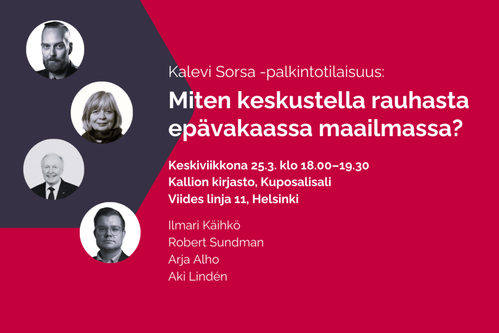 Vuoden 2025 Kalevi Sorsa -palkinto on myönnetty Ydin-lehdelle tunnustuksena sen pitkäjänteisestä työstä laaja-alaisen yhteiskunnallisen keskustelun edistäjänä sekä rauhan ja aseistariisunnan kysymysten pitämisestä julkisen keskustelun agendalla jo lähes viiden vuosikymmenen ajan. Aika: Keskiviikkona...